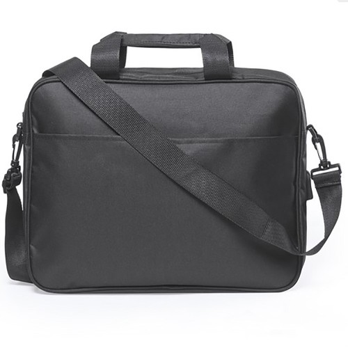 "Document bag in resistant 600D polyester with black finish and zipper closure. With headphone outlet and inside compartment with USB port for powerbank connection (not included). With resistant reinforced handles and accessory at the rear for trolley bar adjustment. Inside with padded compartment for laptops up to 15" and compartment for tablets up to 10"". With a wide range of inside and outside pockets and adjustable shoulder strap with carabiner closure."