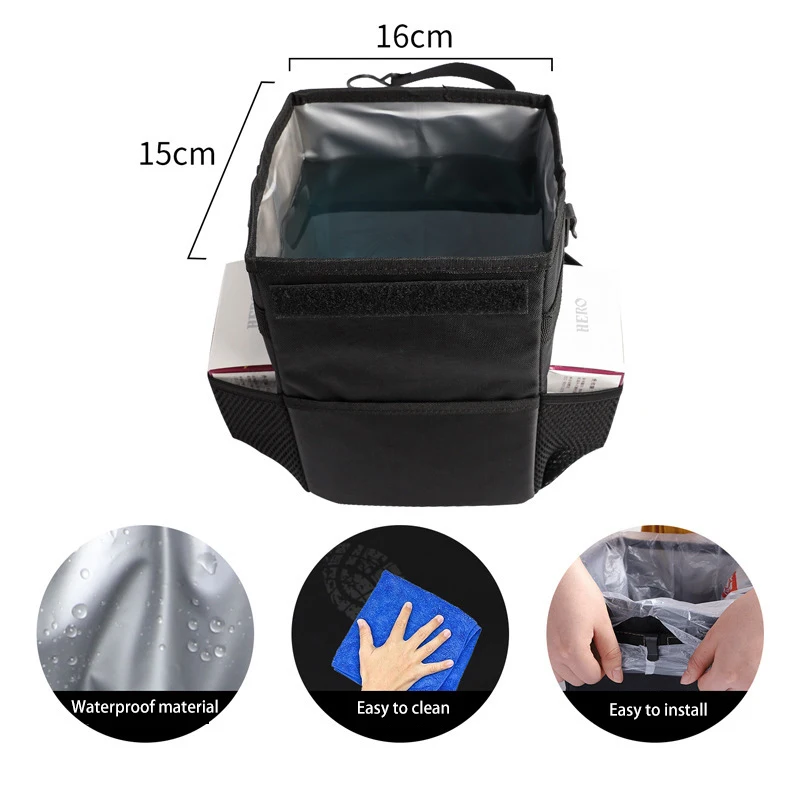 Car Back Seat Organizer Trash Bin Foldable Leakproof Vehicle Headrest Hanging Trash Can With Storage Pockets