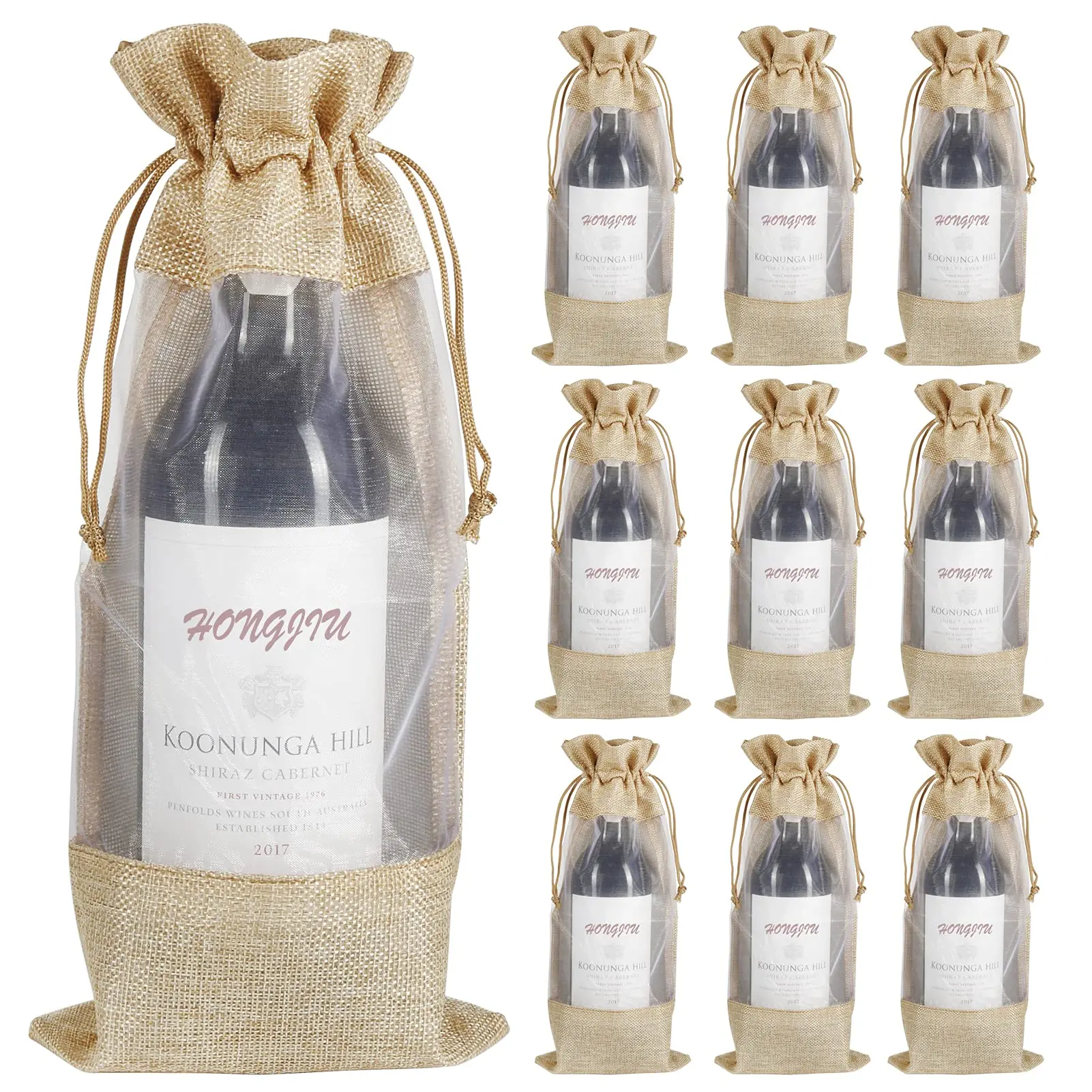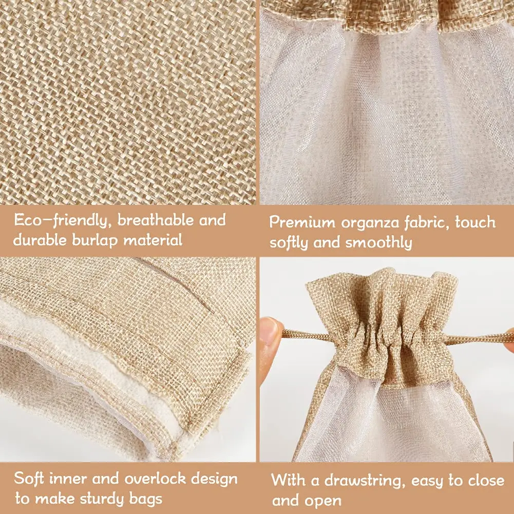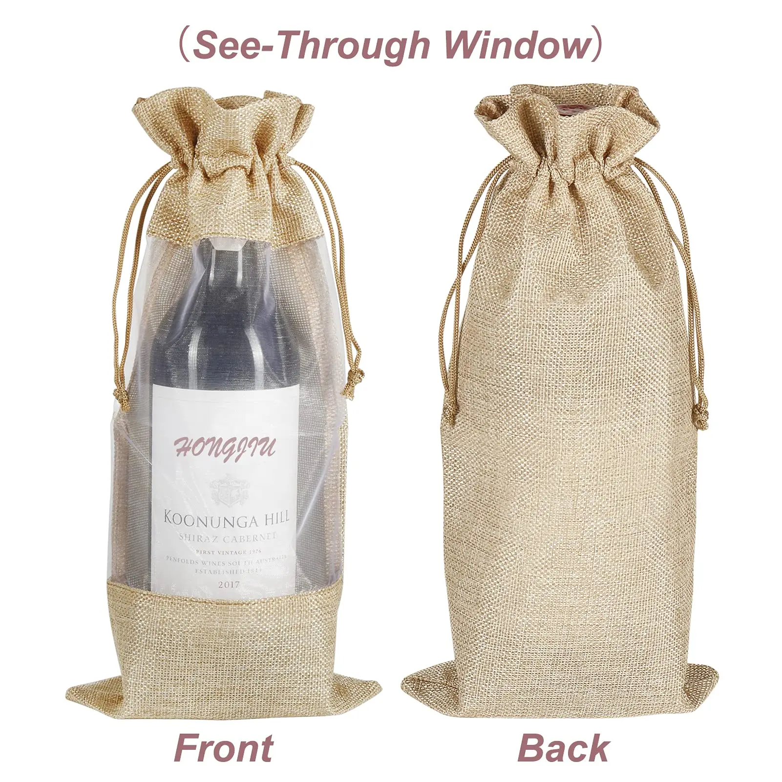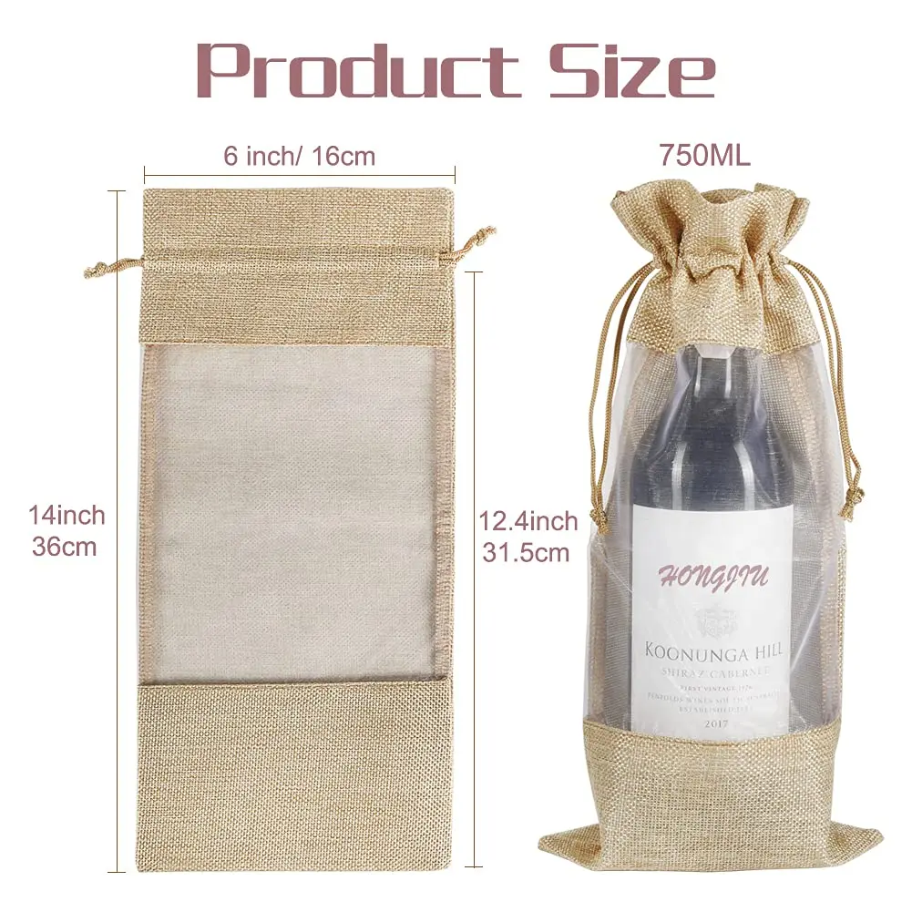 Clear Window Organza Covers Hemp Drawstring Natural Jute Wine Bottle Water Sack Burlap Christmas Party Hessian Bag