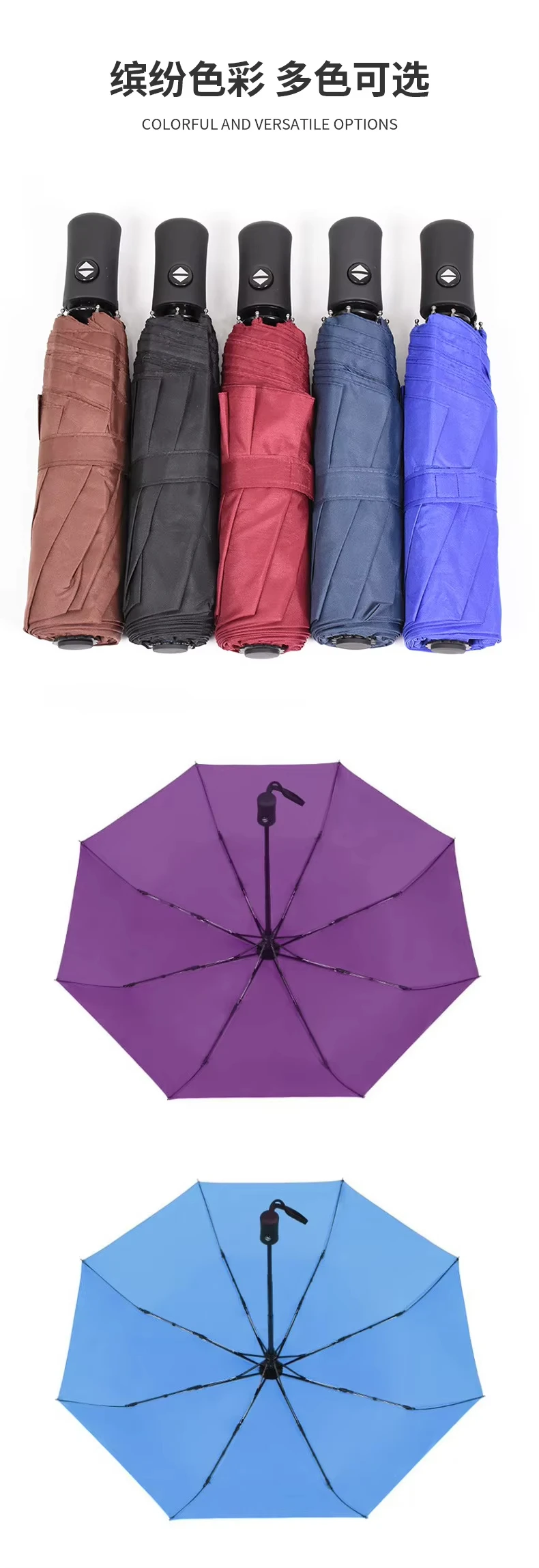 Compact Travel Automatic Umbrella Logo Print Promotional Unbreakable 8 Ribs Rainproof Auto Open Close 3 Folding Umbrella