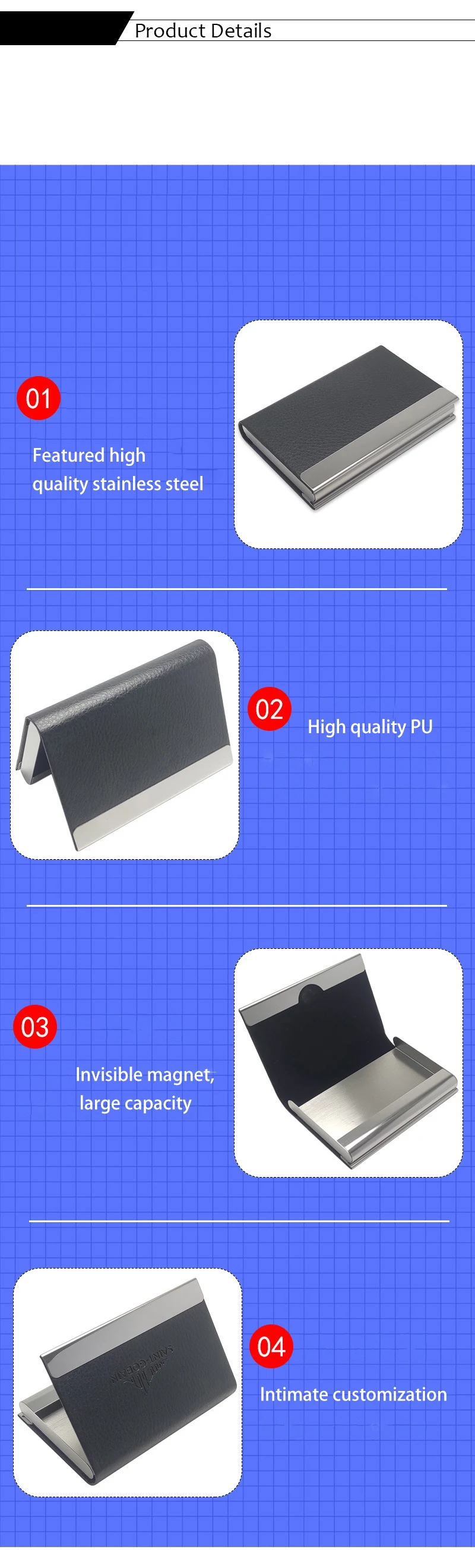 Custom Design Metal Personalized Card Case Leather Business Id Card Holders