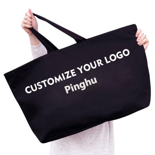 Custom Foldable Cotton Canvas Tote Bag with Compartment Pocket Lightweight and Eco-Friendly