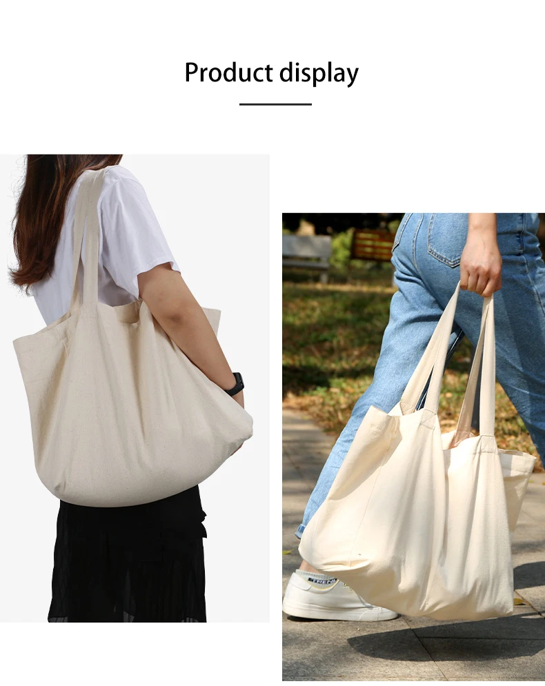 Custom Logo Extra Large Foldable Eco-friendly Cotton Canvas Blank Shopping Tote Bag