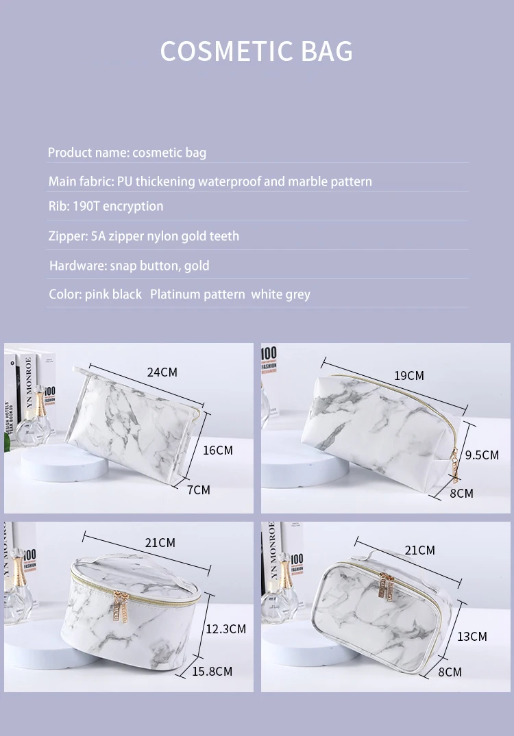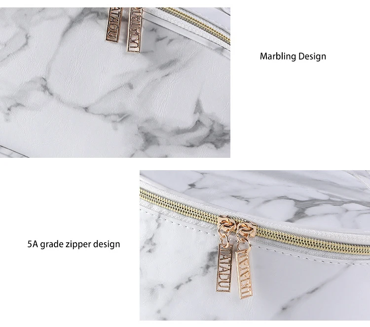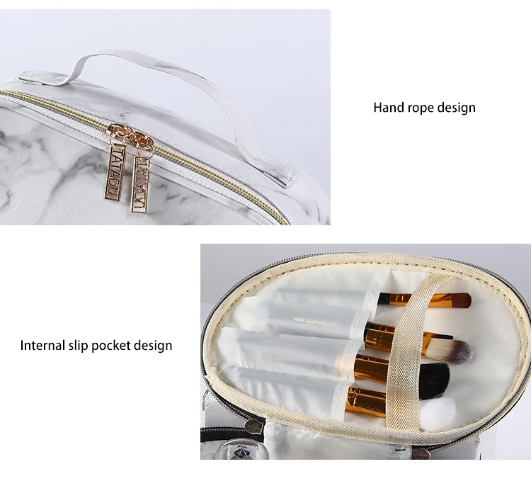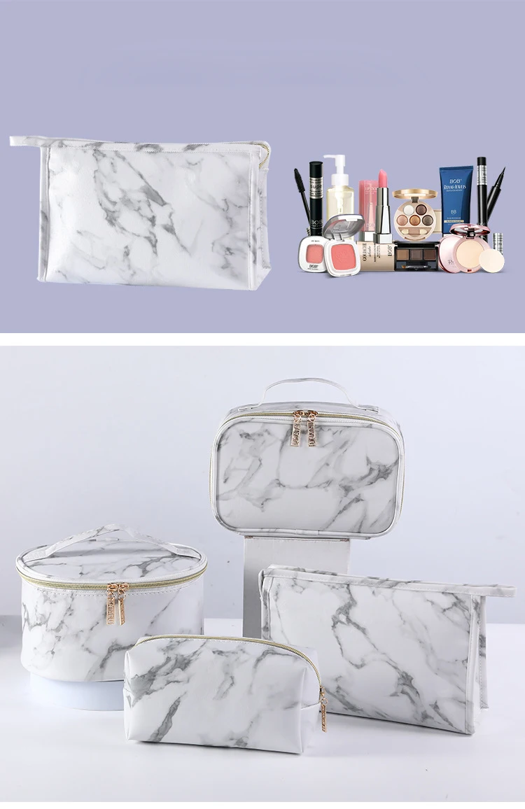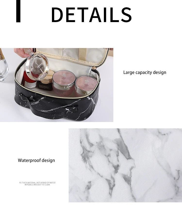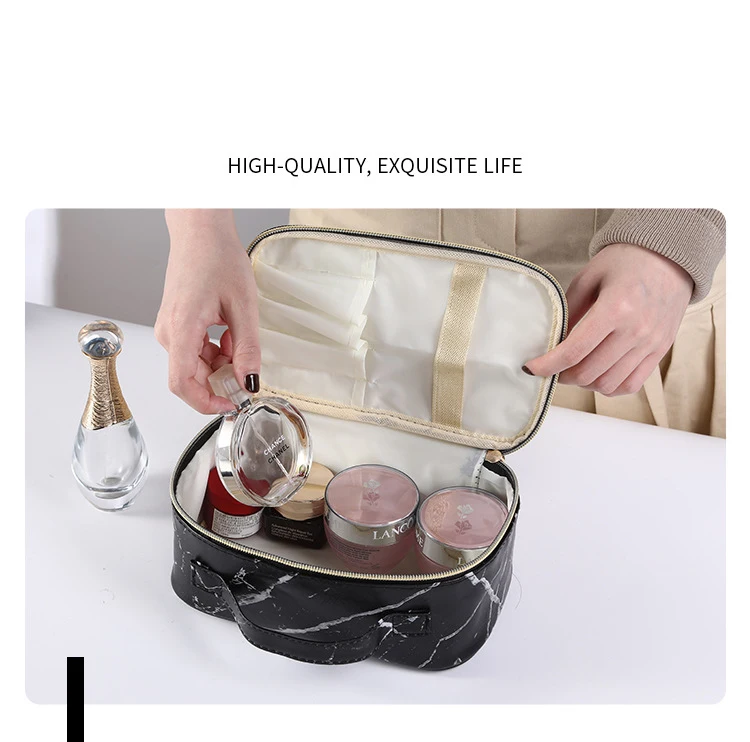 Custom Logo Marble Pattern Zipper Portable Waterproof Toiletry Organizer Travel Makeup Cosmetic Bag