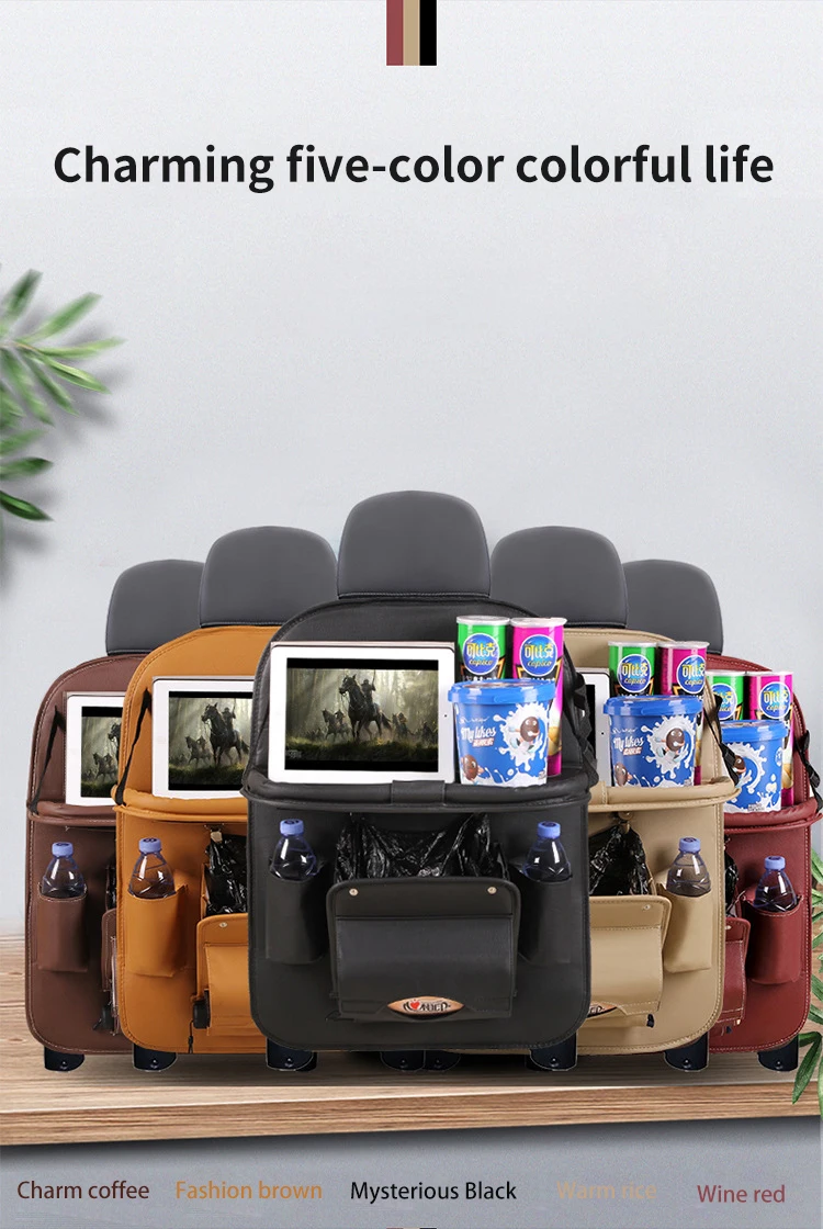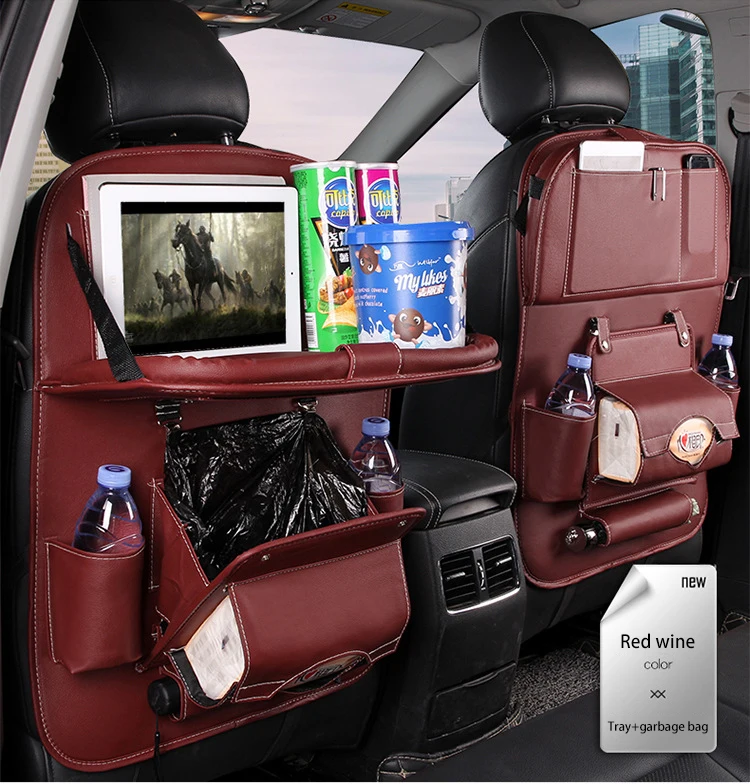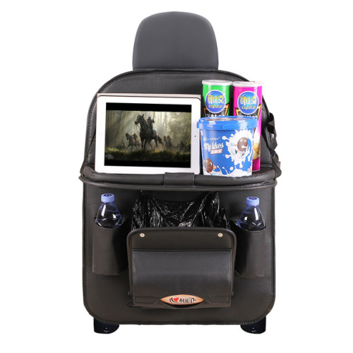 Custom Pu Leather Car Seat Back Organizer Foldable Table Tray Travel Storage Bag