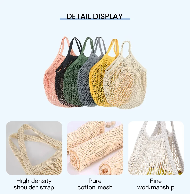 Customized Portable Colorful Cotton Net Bag Reusable Shopping Grocery Tote Bag Cotton Mesh Bag for fruit vegetable