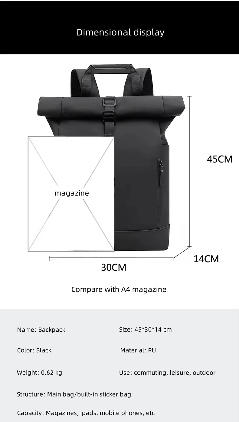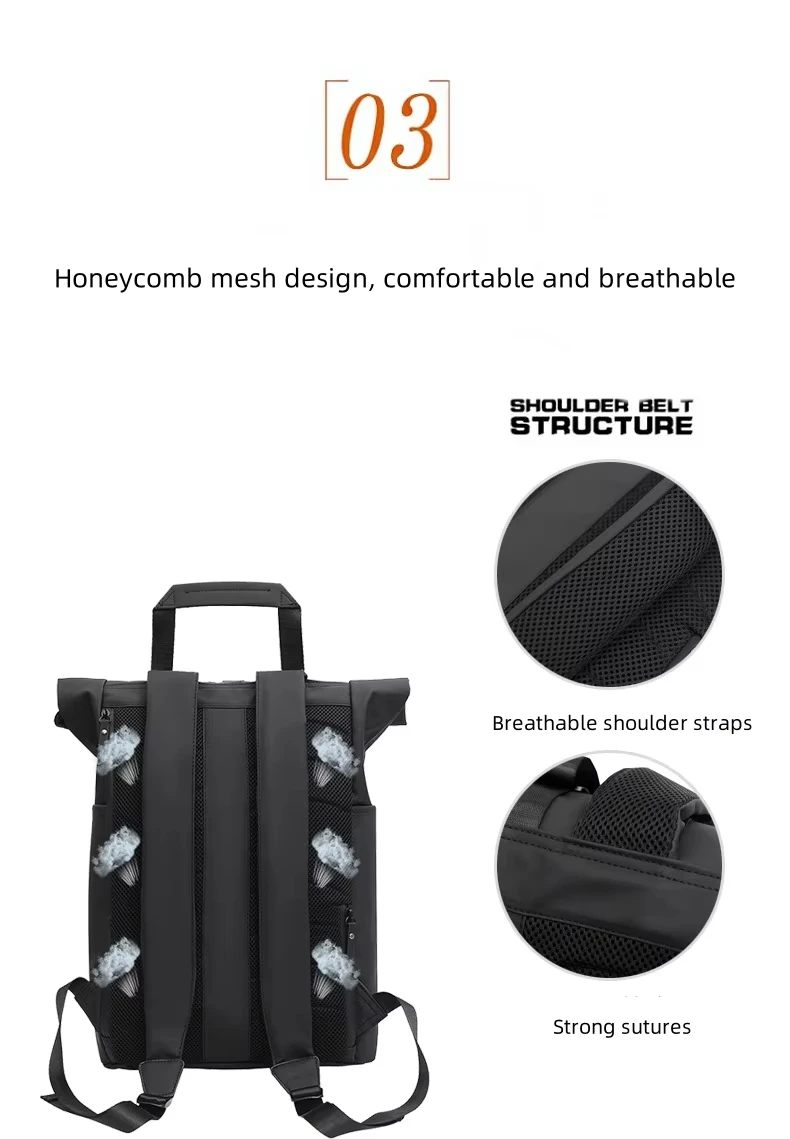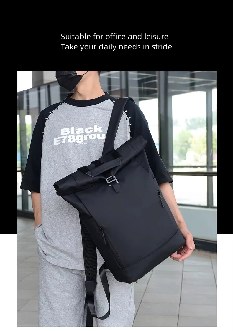 Factory Price Men's Backpack Roll Top Waterproof Business Laptop Bag Work Commute Backpack School Bag