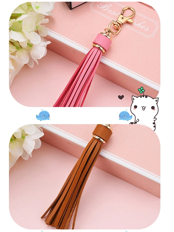 Fashion 15cm Popular Pu Leather Tassel Keychain Bag Pendant Luxury Keychain Accessories