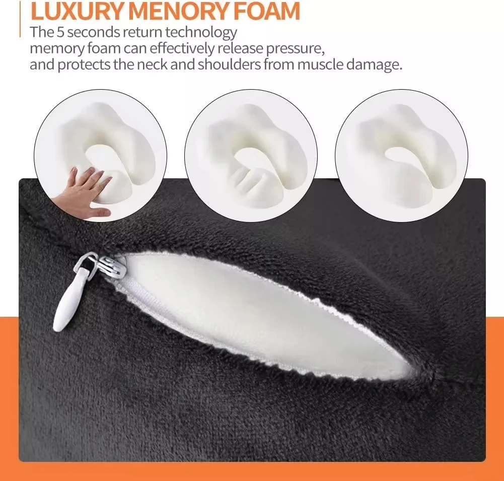 High Density 3in 1Memory Foam Lightweight Neck Pillows for Sleeping on Airplane Gray with EVA Storage Box