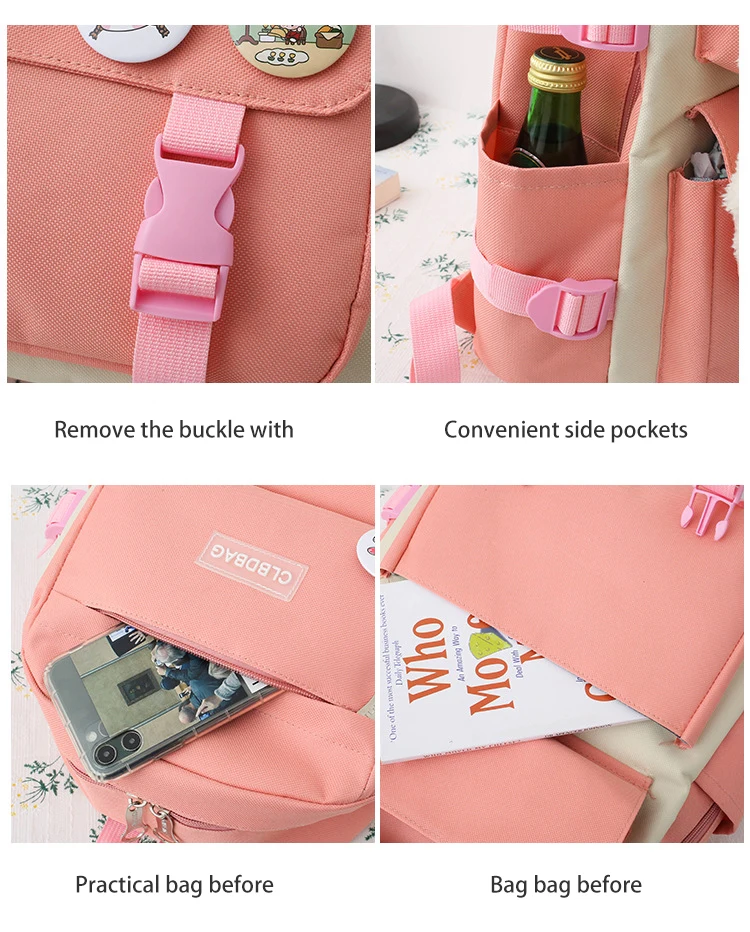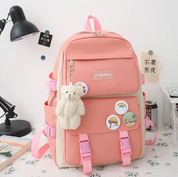 Hot Sale Customized Waterproof Travel 4 in 1 Primary Student Pretty Girls Backpack School Bag Set