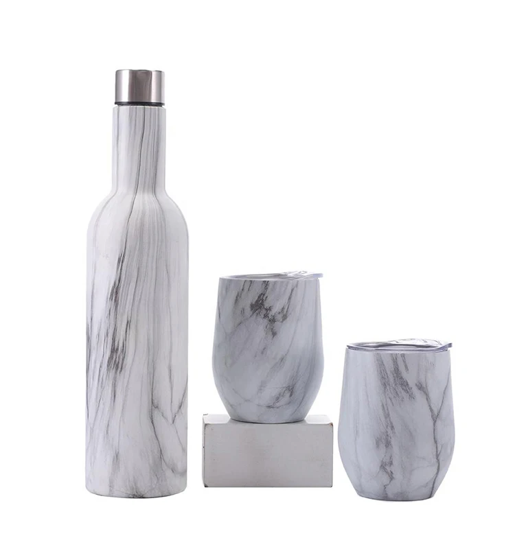 Hot Sell 800ml Wine Bottle And 12oz Wine Cups Stainless Steel Sublimation Wine Bottle Tumbler Set