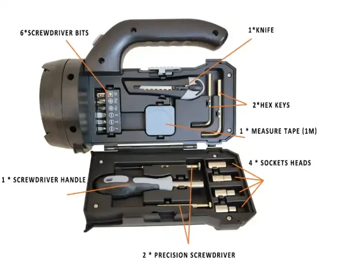 LED Camping Tool Flashlight with Screwdriver Set Household Outdoor Emergency Light Bright Portable Lamp Hardware Tool Set