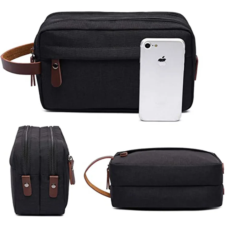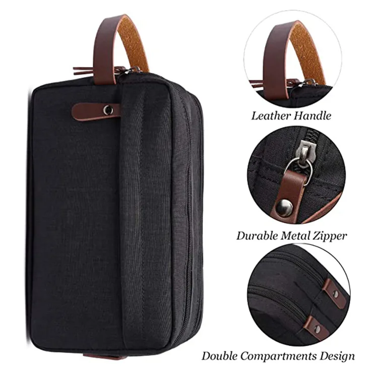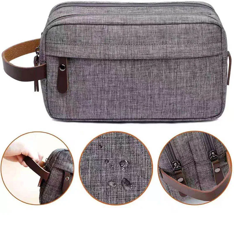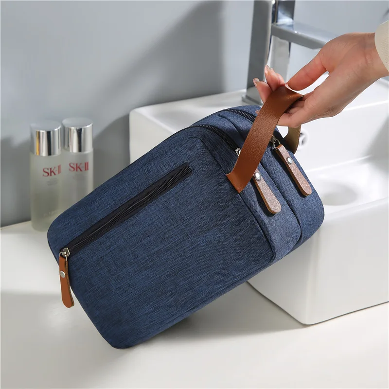 Large Capacity Leisure Waterproof Toiletry Storage Bag Men's Wash Bag Outdoor Travel zipper Cosmetic Bag with leather handle