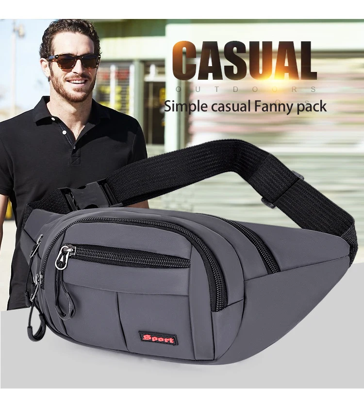 Large Capacity Waterproof Casual Fashion Black Nylon Waist Bag Girl Fanny Packs
