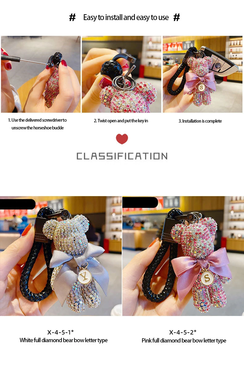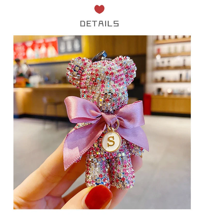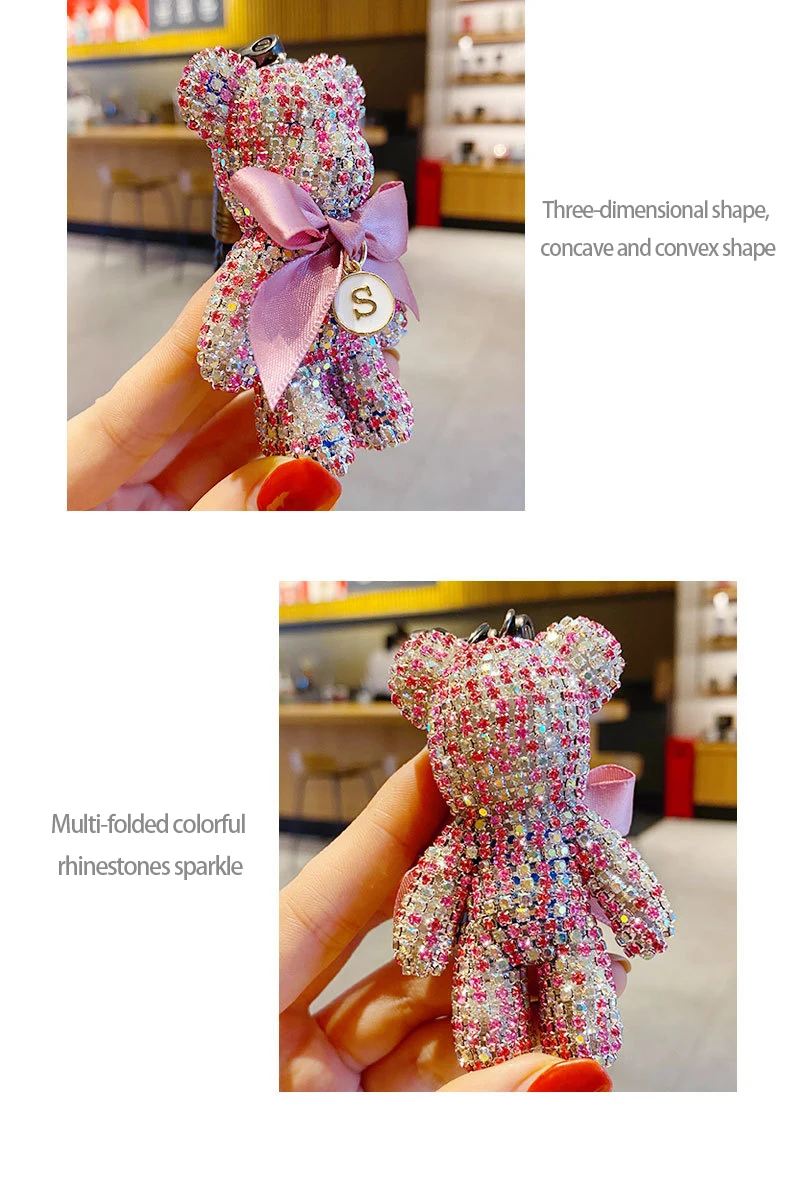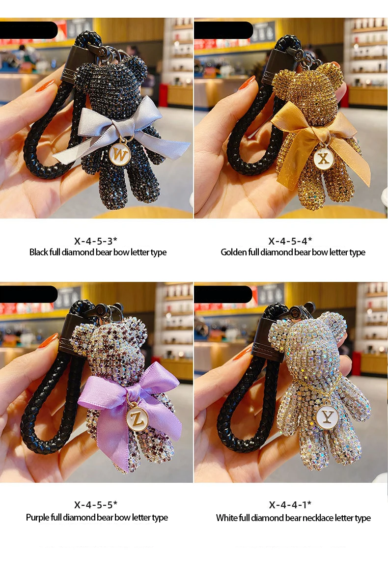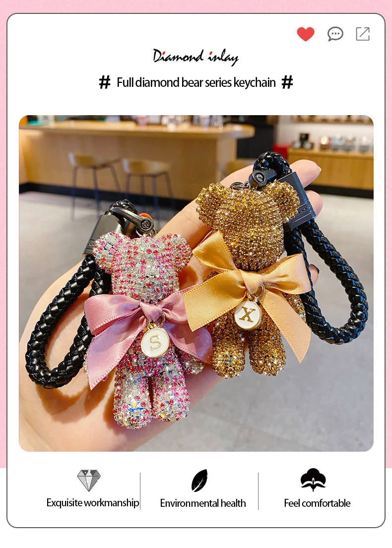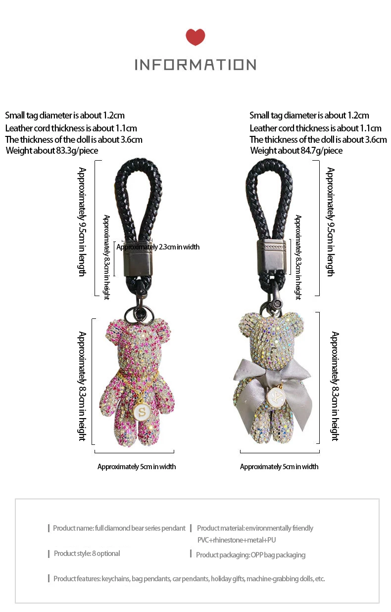New Luxury Rhinestone Bear Keychain Woman Car Bag Pendant Key Chains Couple Gift Wholesale