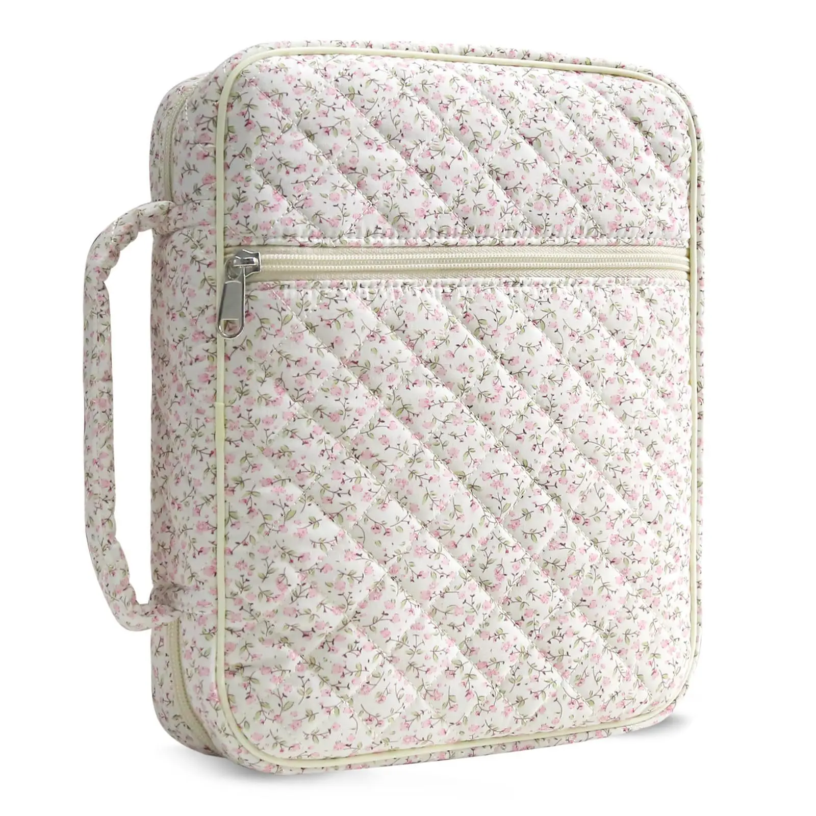 OEM & ODM Quilted Cotton Bible Tote Bag Book Organizer Casual Style Bible Cover Case with Zipper for Protection