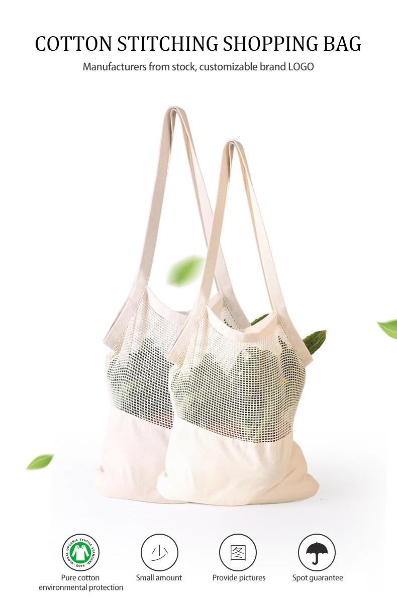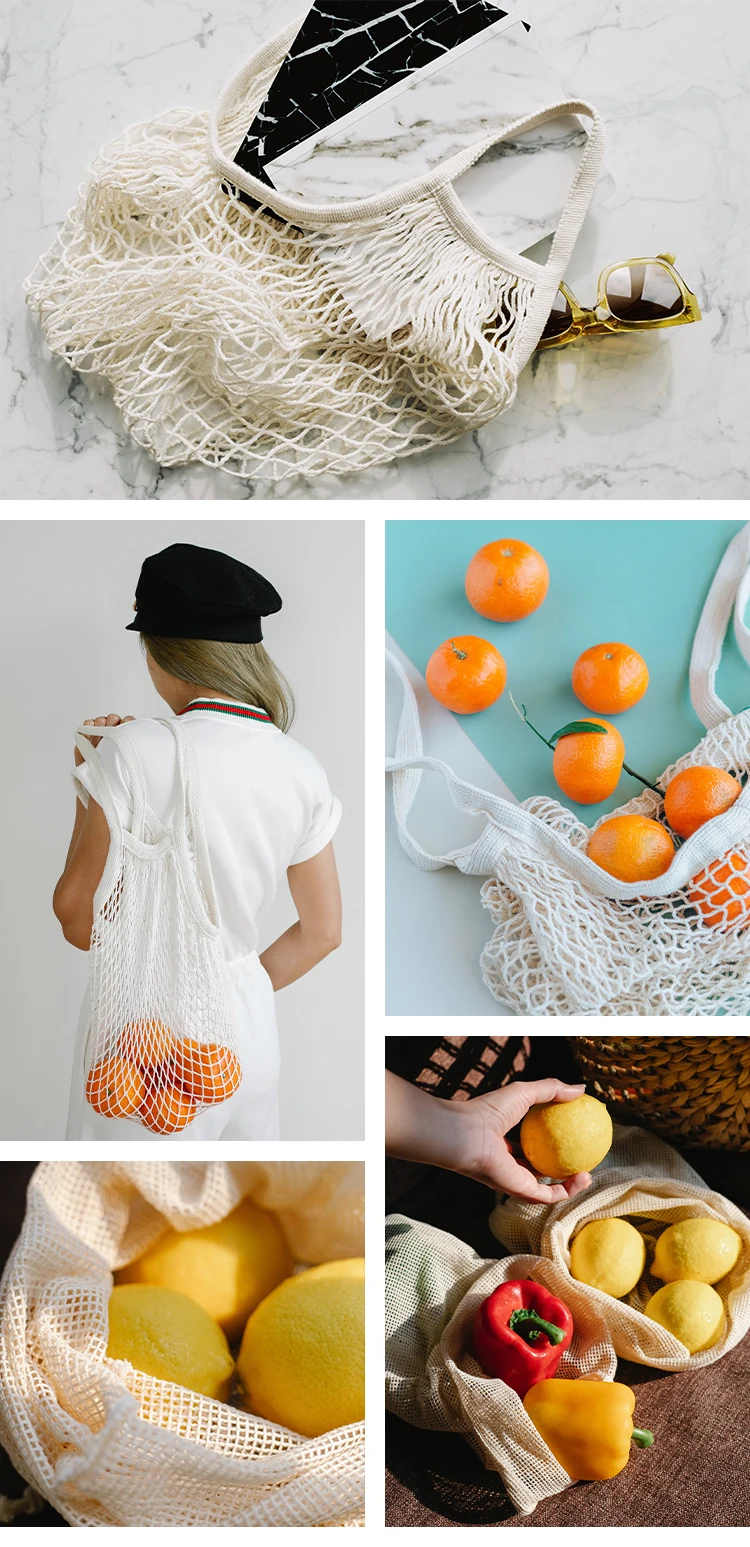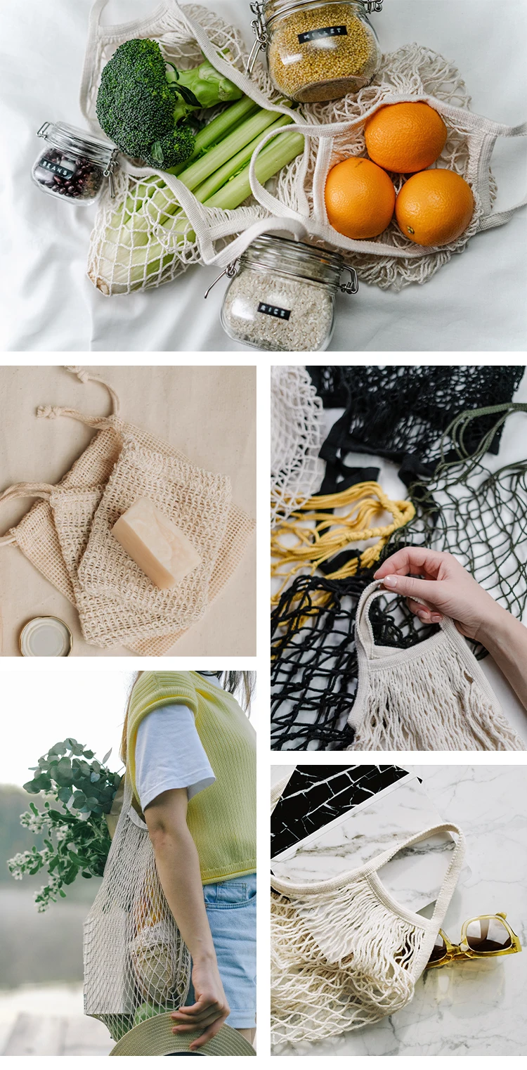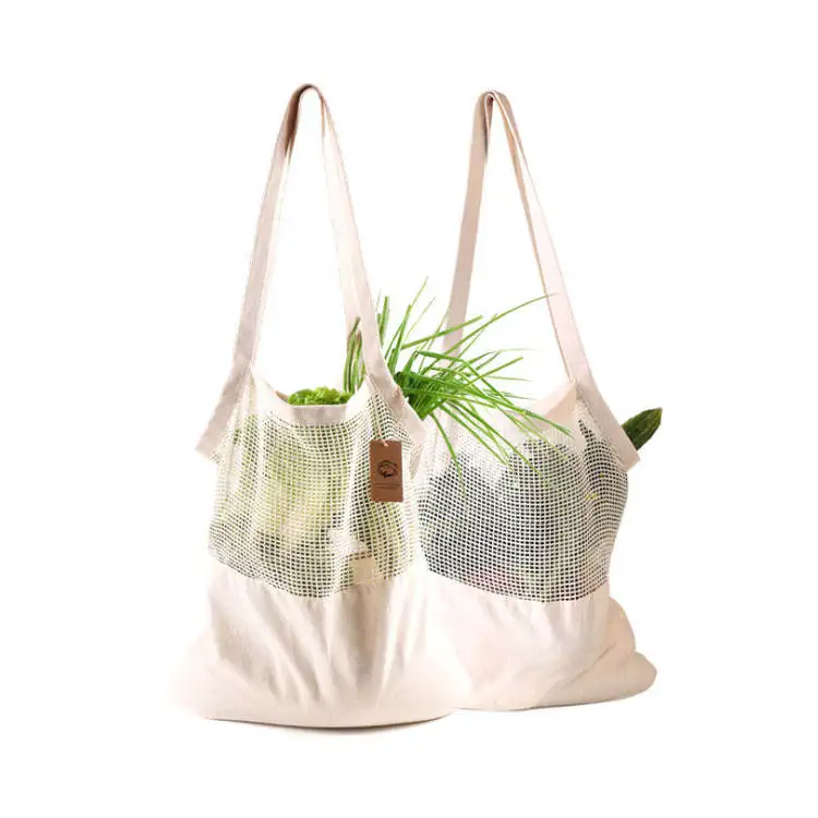 Organic cotton reusable mesh bags for fruits and vegetables folding shopping bag