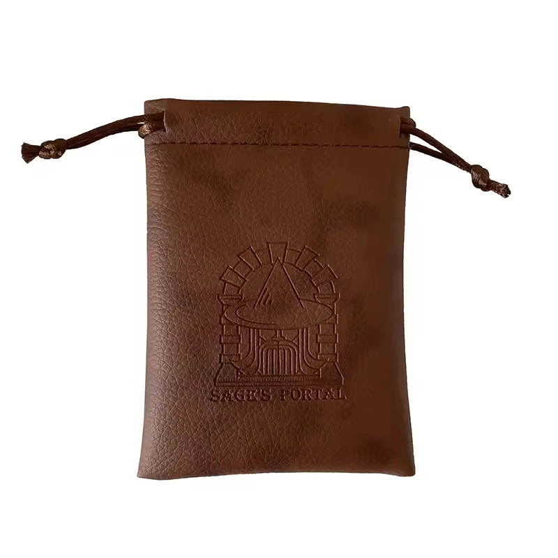 Promotion Pu Leather Iron Sheet Bag Custom Emboss Printing Drawstring Leather Pouch Storage Jewelry Pu Leather Pouch
