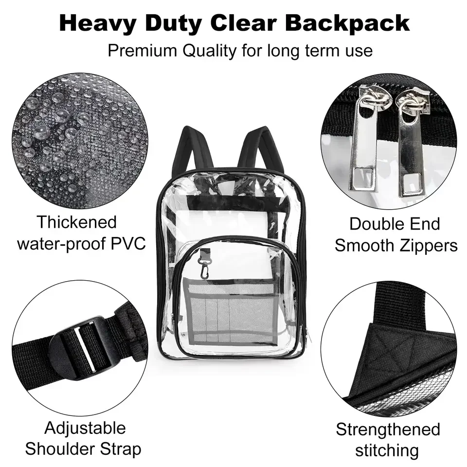 See Through Waterproof Backpack Heavy Duty School Transparent Bookbag Women Large PVC Clear Backpack for Men