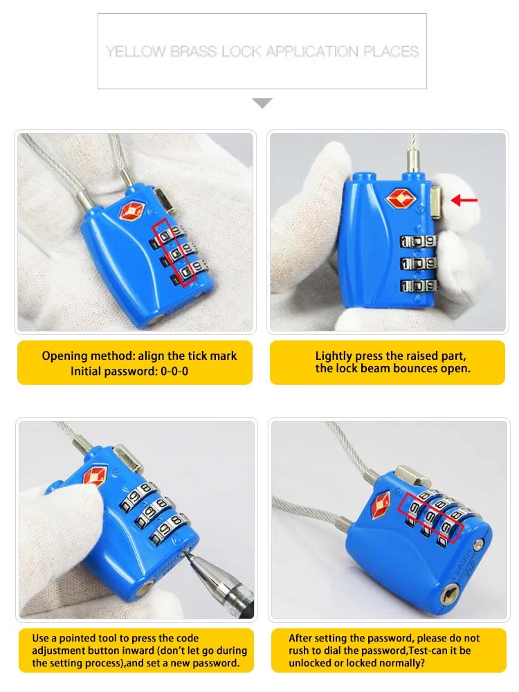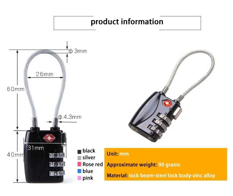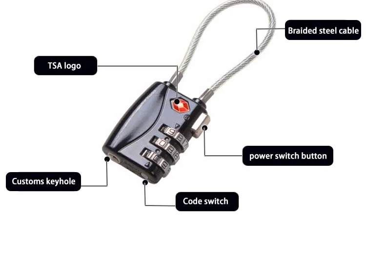 TSA Safety Luggage Cable Combination Lock authorised zinc alloy 3 digit lock combination travel cable TSA approved lock