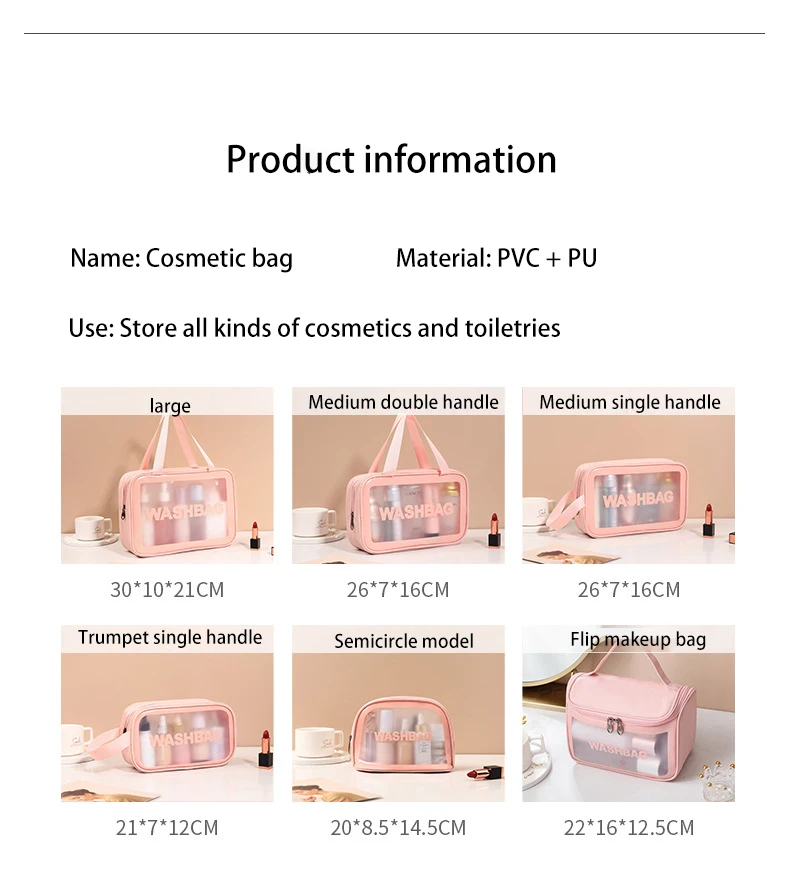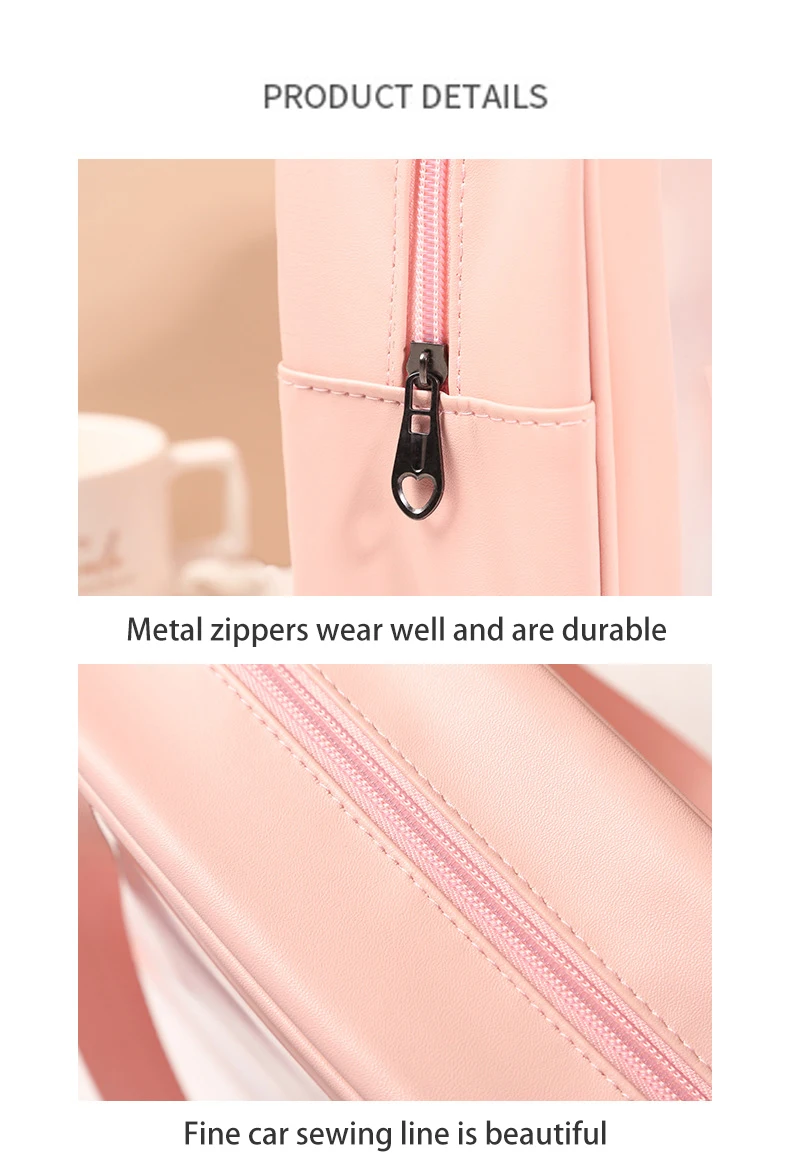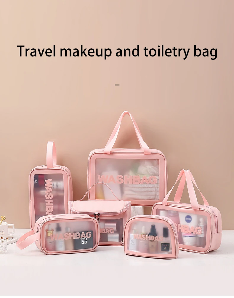 Waterproof Custom Luxury Pink Pu PVC Clear MakeUp Beauty Cosmetic Bag Wth Printed Logo
