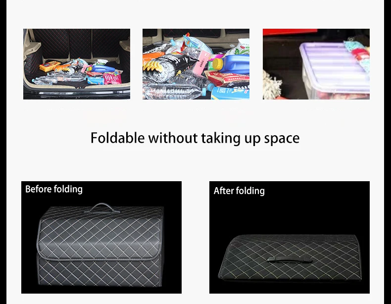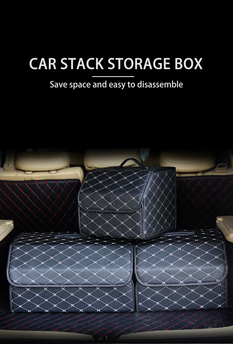 Waterproof luxury PU Leather Car Trunk Organizer Washable Universal Folding Storage Box Organizer