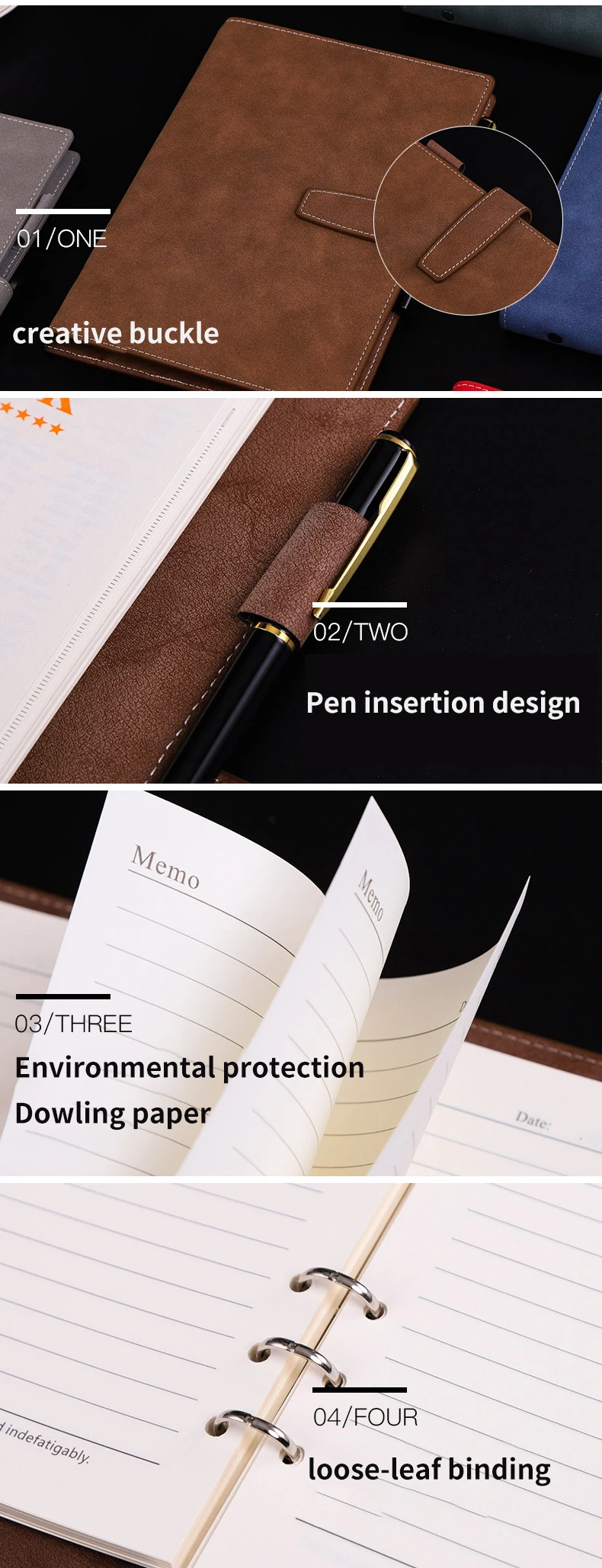 Wholesale Custom Printing Pu Leather Business A5 Spiral Planners Binder Notebook