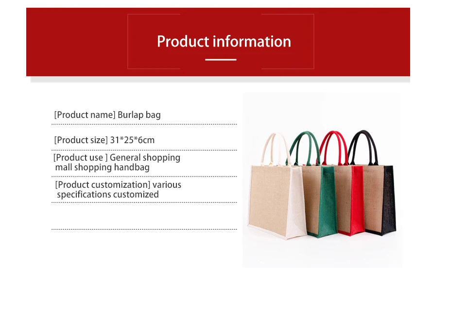 Wholesale Plain Custom Printed Large Natural Colourful Jute Tote Shopping Bag