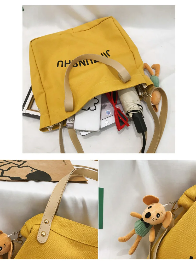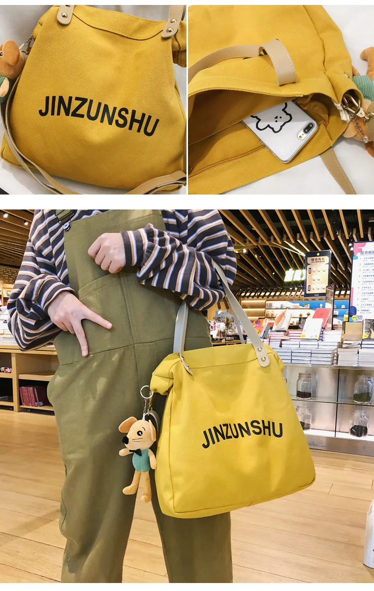 Women's Fashion Wholesale Tote Bags Canvas Cotton Crossbody Shoulder Bag With Pendant