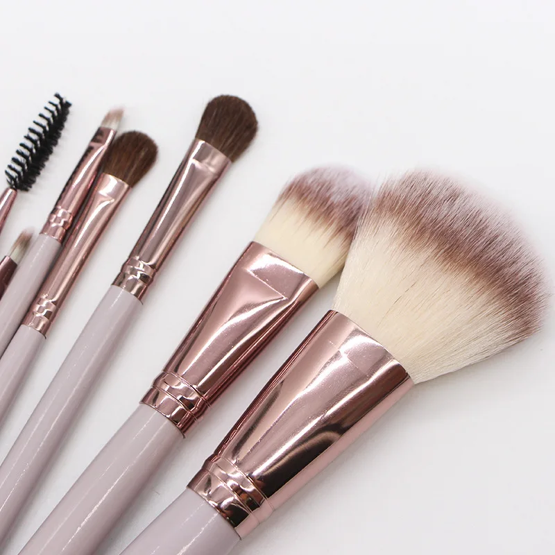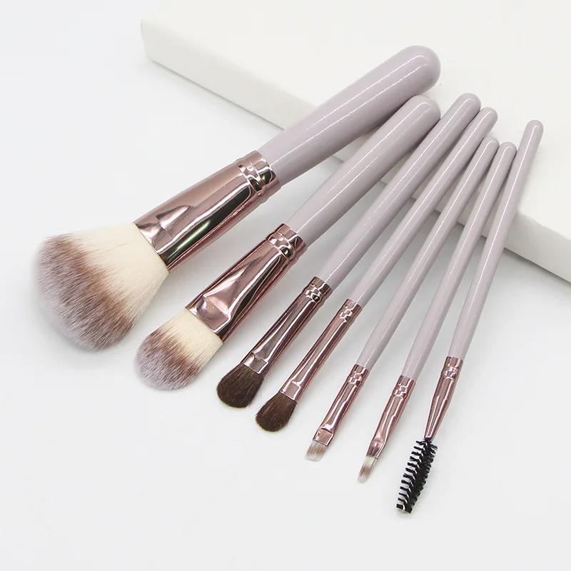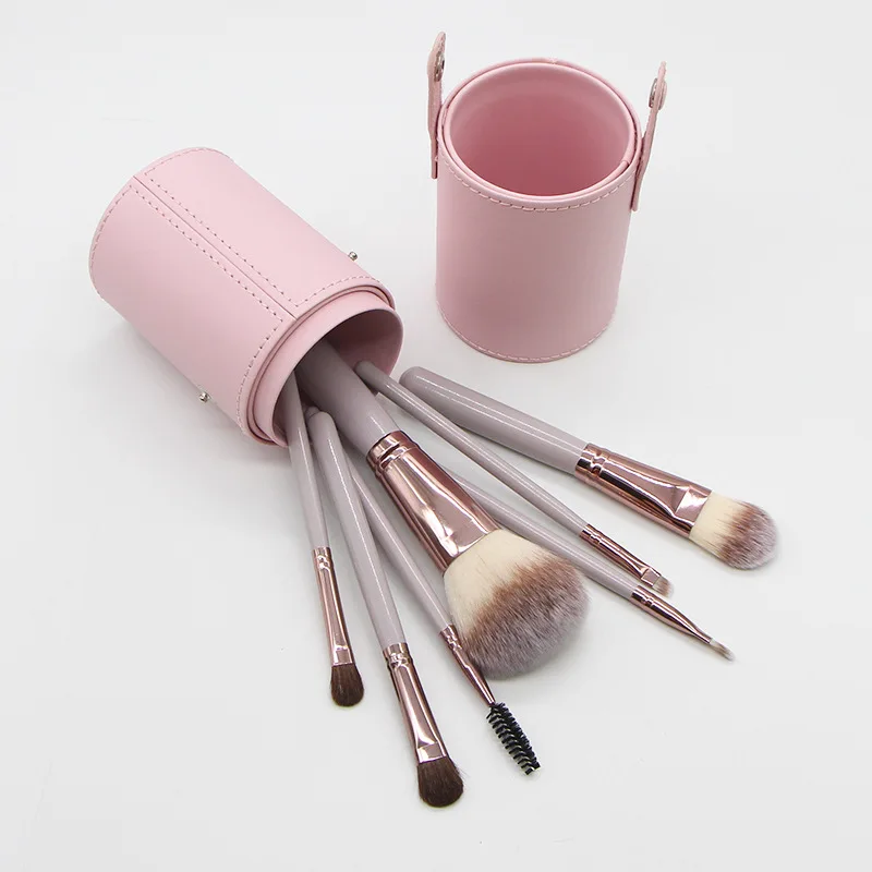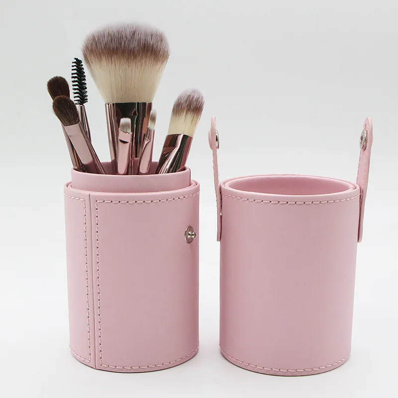 custom private label logo pink handle professional 7 makeup brushes set with holder bucket